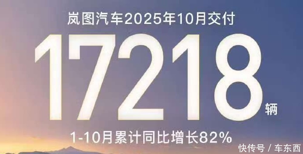 岚图汽车销量也迎来大爆发,10月交付1.72万辆,再创历史新高,1-10月累计同比增长82%,实现九连涨。